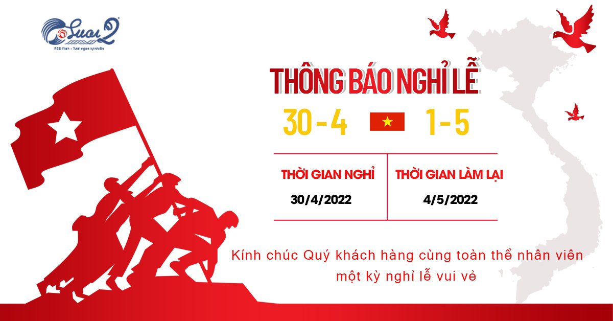 Công ty Cổ phần Thủy sản PSD xin thông báo lịch nghỉ lễ 30/4 và ...